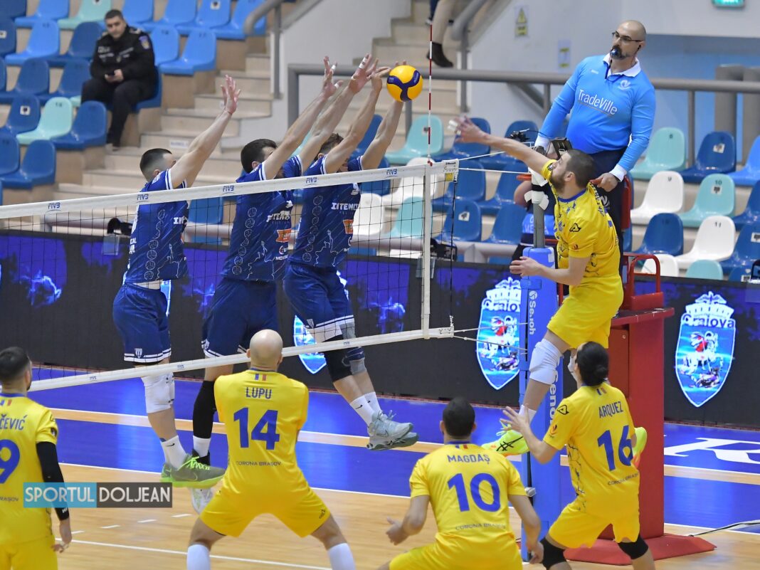 SCM Universitatea Craiova a pierdut cu scorul de 3-1 meciul disputat la Brașov, în compania campioanei Corona, primul duel din semifinalele campionatului național de volei Divizia A 1.
